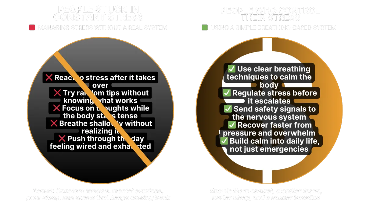 When you understand how breathing directly affects the nervous system, everything becomes simpler. One focused approach can replace scattered tips, half-working routines, and constant frustration. Instead of fighting stress, your body starts responding the way it was designed to.
